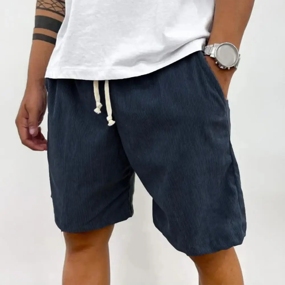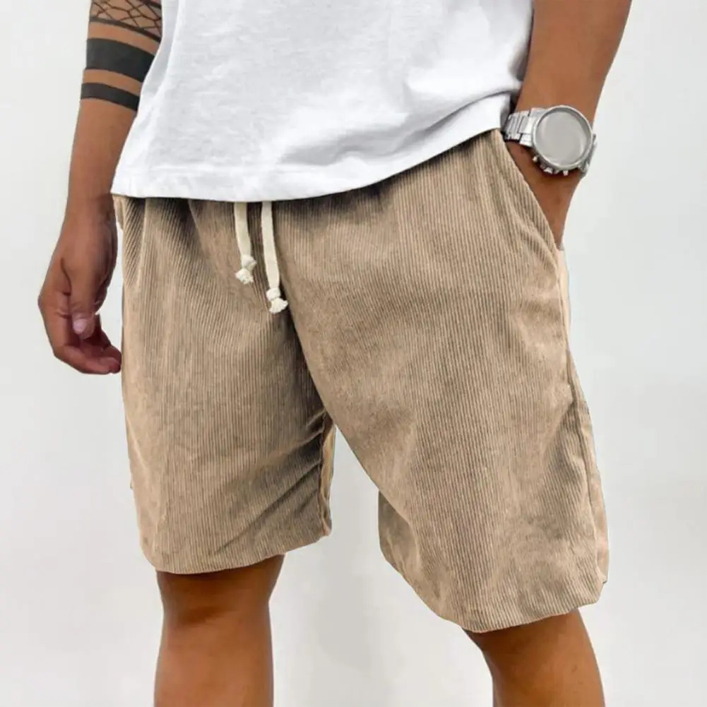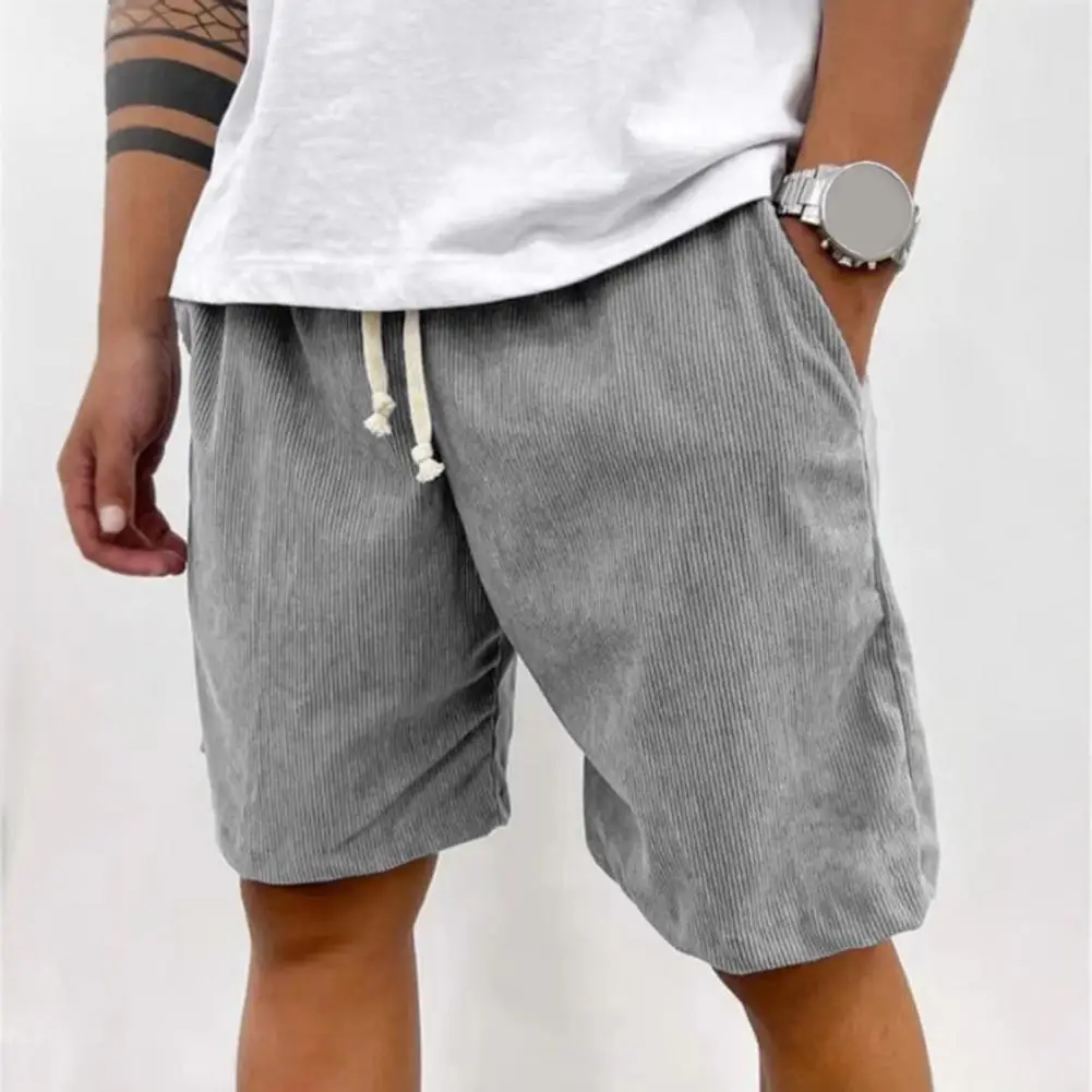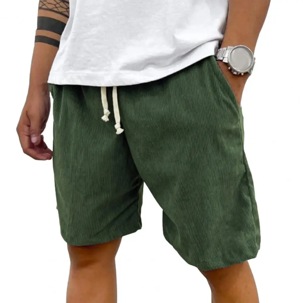 Men's Retro Corduroy Shorts Casual Drawstring Waist Shorts Solid Color Streetwear Shorts for Work Fitness Beach Vacation